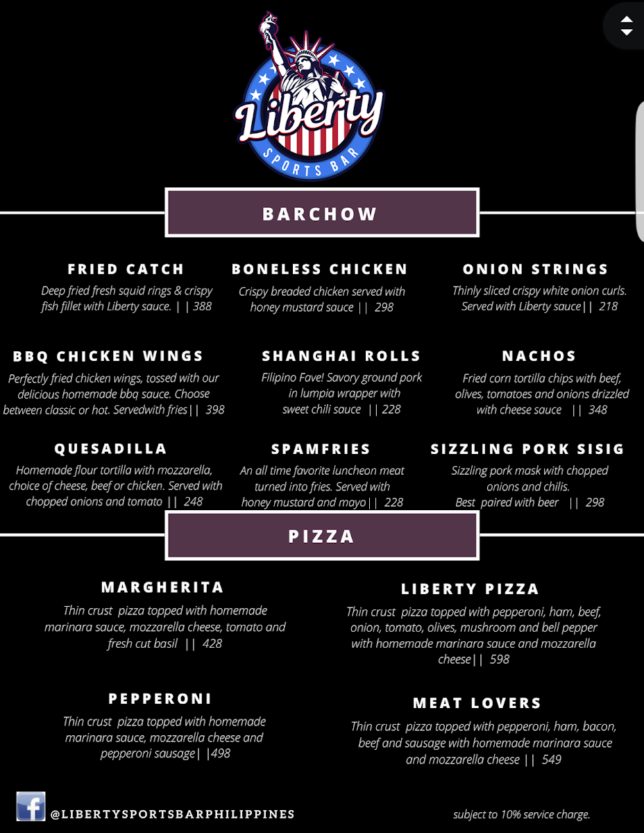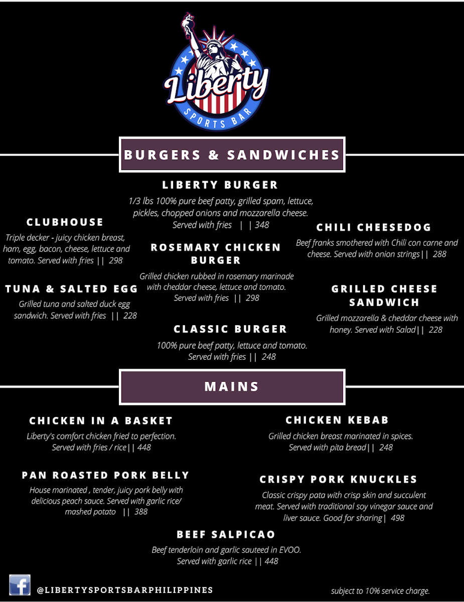 The menu at Liberty Sports Bar offers a comfortable blend of casual American pub fare and classic bar drinks, designed to complement the welcoming atmosphere and lively sports viewing experience. Whether you're settling in for a game or meeting friends, the selection focuses on simple, satisfying dishes and refreshing cocktails that suit both day and night occasions.